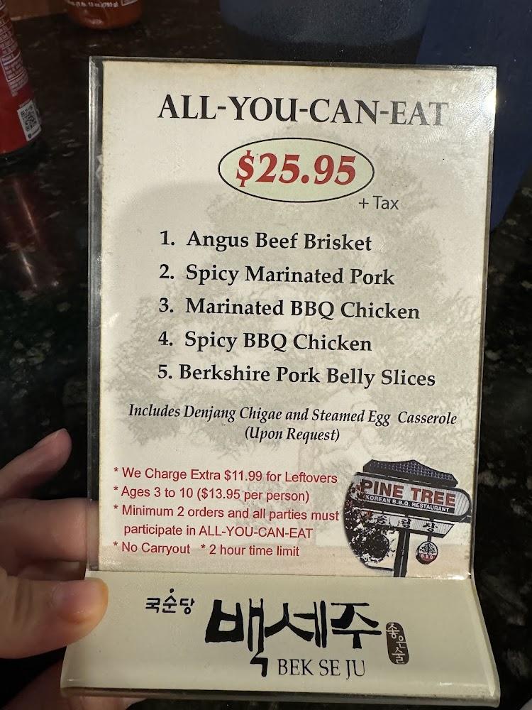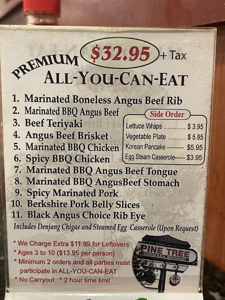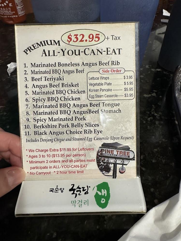 The menu at Pine Tree Korean BBQ showcases a wide array of flavors. Guests can enjoy classic Korean BBQ options, featuring beautifully marinated meats like Angus beef brisket and spicy pork. The all-you-can-eat option stands out, offering diverse selections allowing diners to explore different tastes.